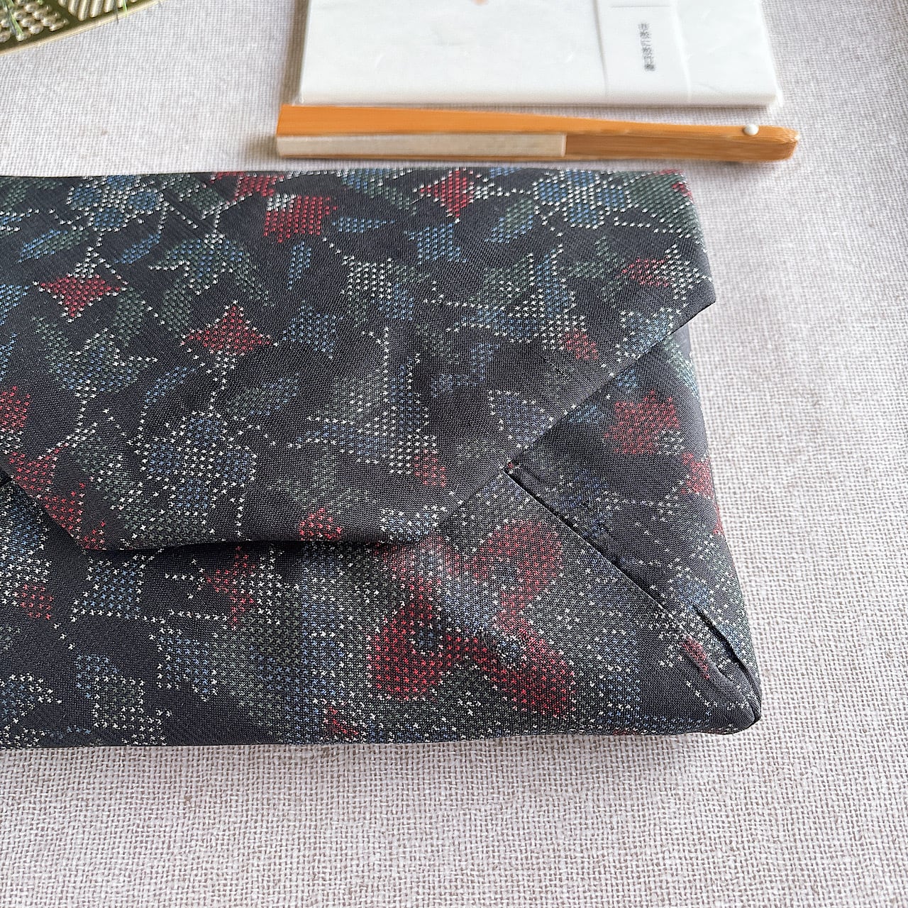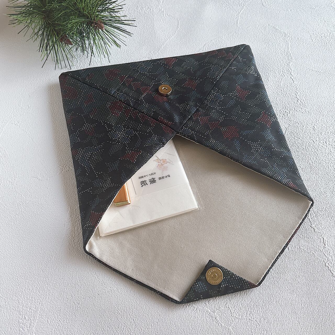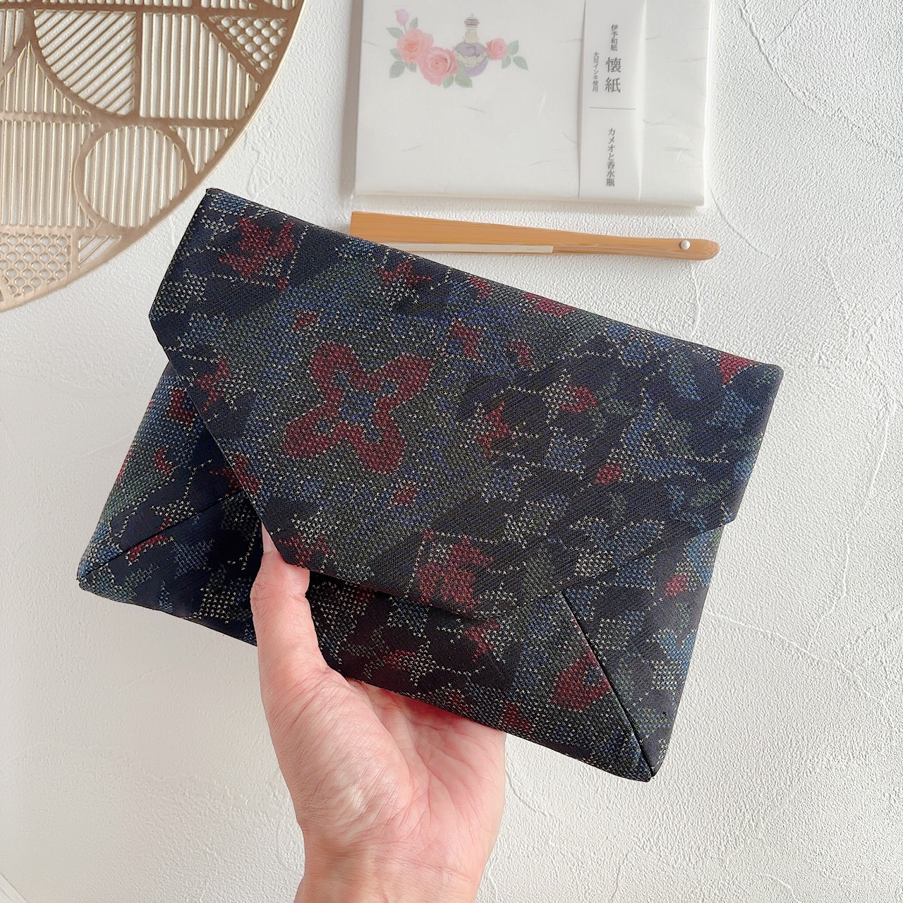 「数寄屋袋」とはそもそも、お茶席で使う懐紙や扇子などの小物をまとめて入れておく封筒型ポーチのことです。
