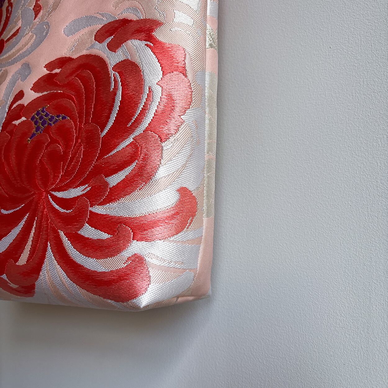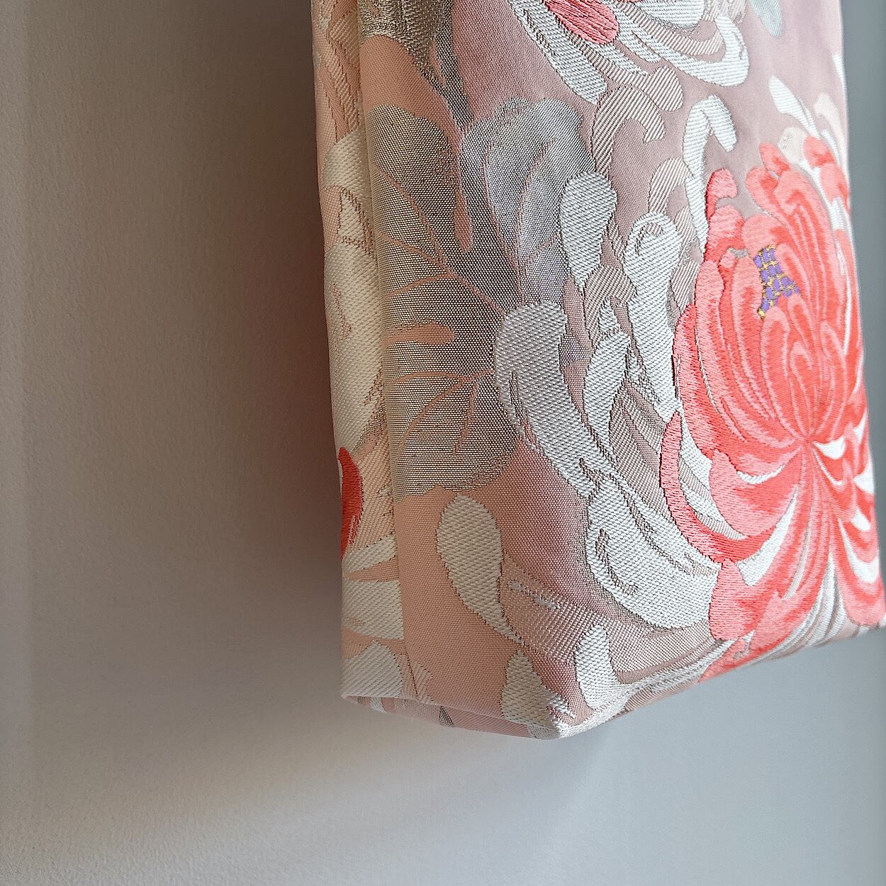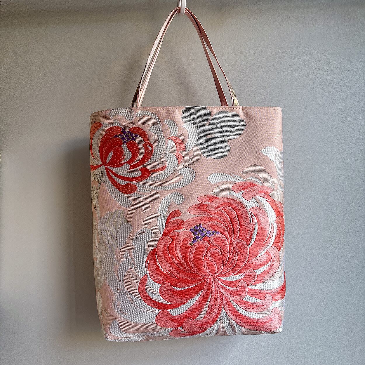 華やかで上品な乱菊文様の帯をリメイクしたトートバッグ。