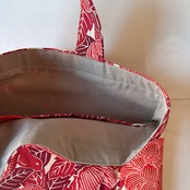 【お年賀・ご挨拶に】牡丹と鳥の着物リメイク マチなしトート(赤)