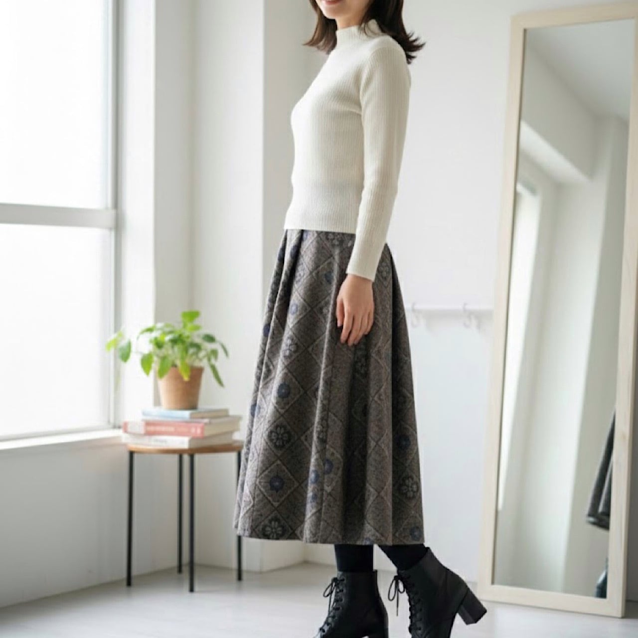 ・白、グレー、黒のハイネックで上品に