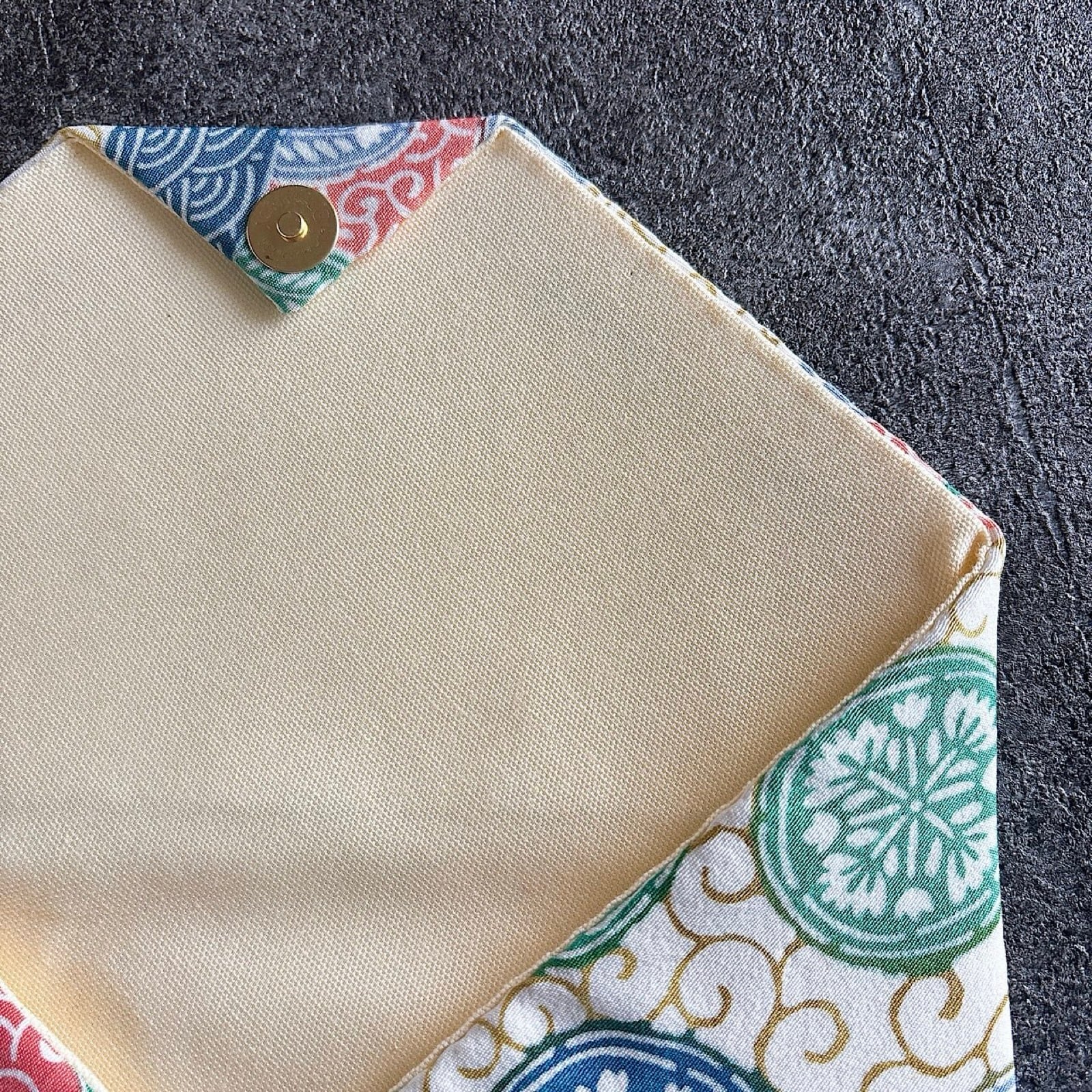 中にネル生地を挟んであり、全体的に柔らかな手触りです。蓋部分に固い厚紙は入れておりませんが、やや厚めの接着芯が入っています。
