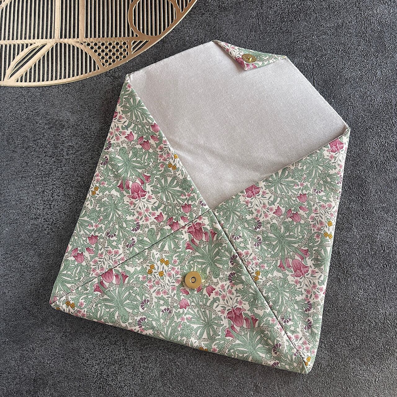 コットン生地からおつくりした洋風の数寄屋袋です。裏には生成りリネンをあわせました。