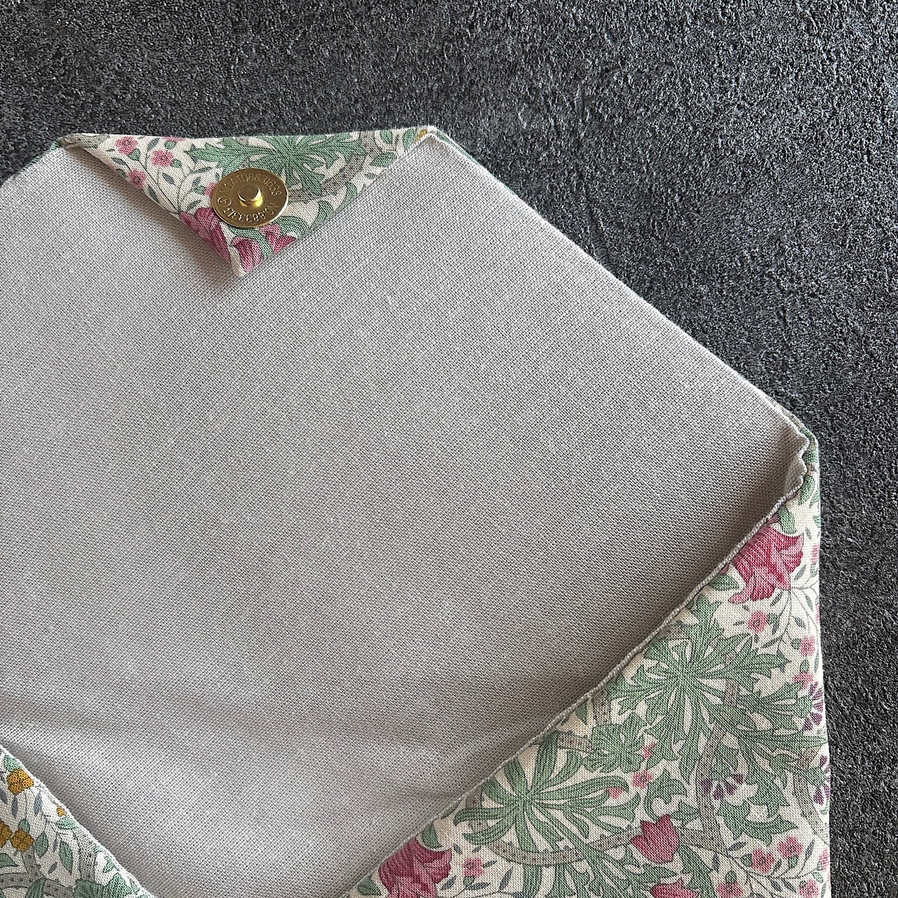 中にネル生地を挟んであり、全体的に柔らかな手触りです。蓋部分に固い厚紙は入れておりませんが、やや厚めの接着芯が入っています。