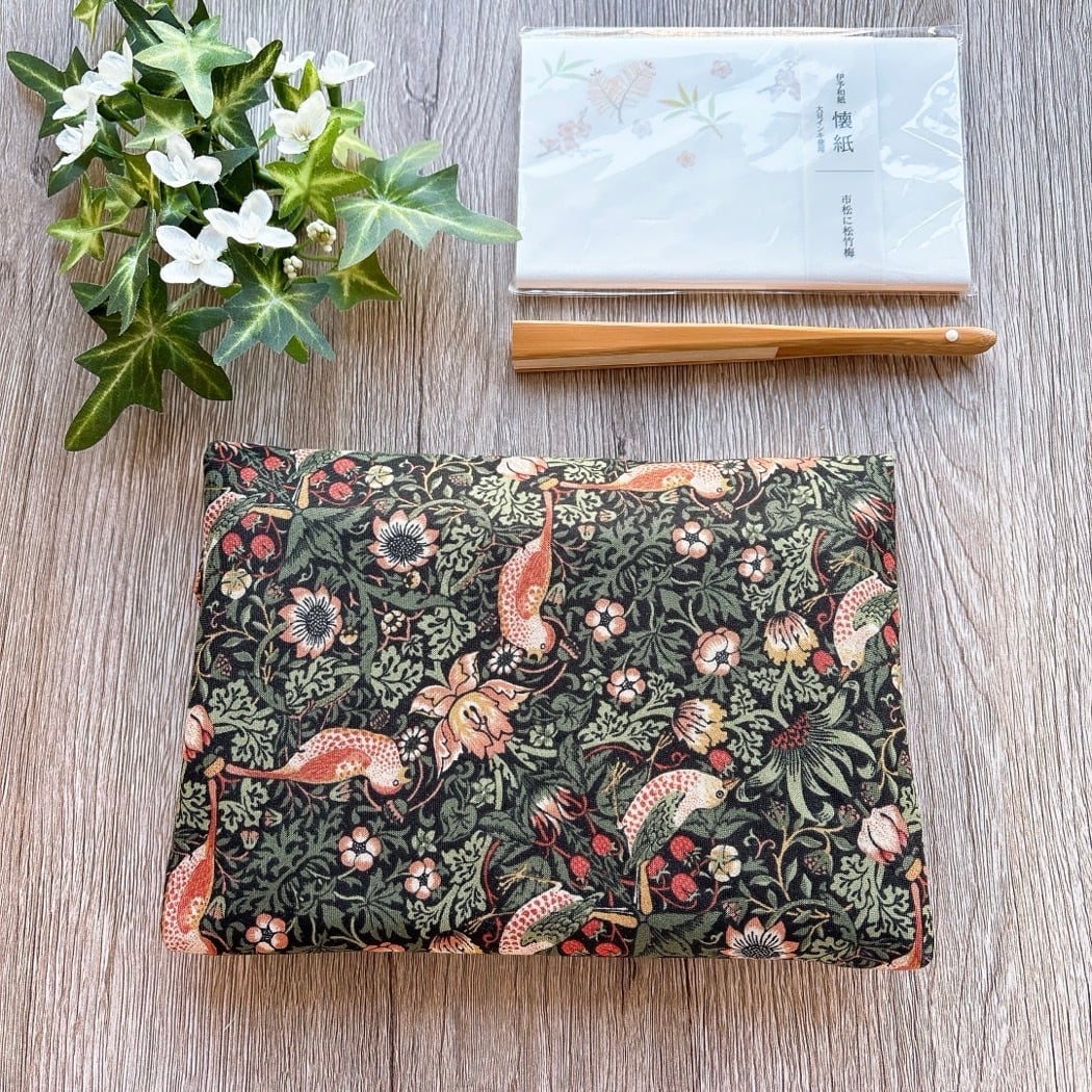 数寄屋袋(いちご泥棒StrawberryTheif小Black) 御朱印帳入れ ウィリアムモリス