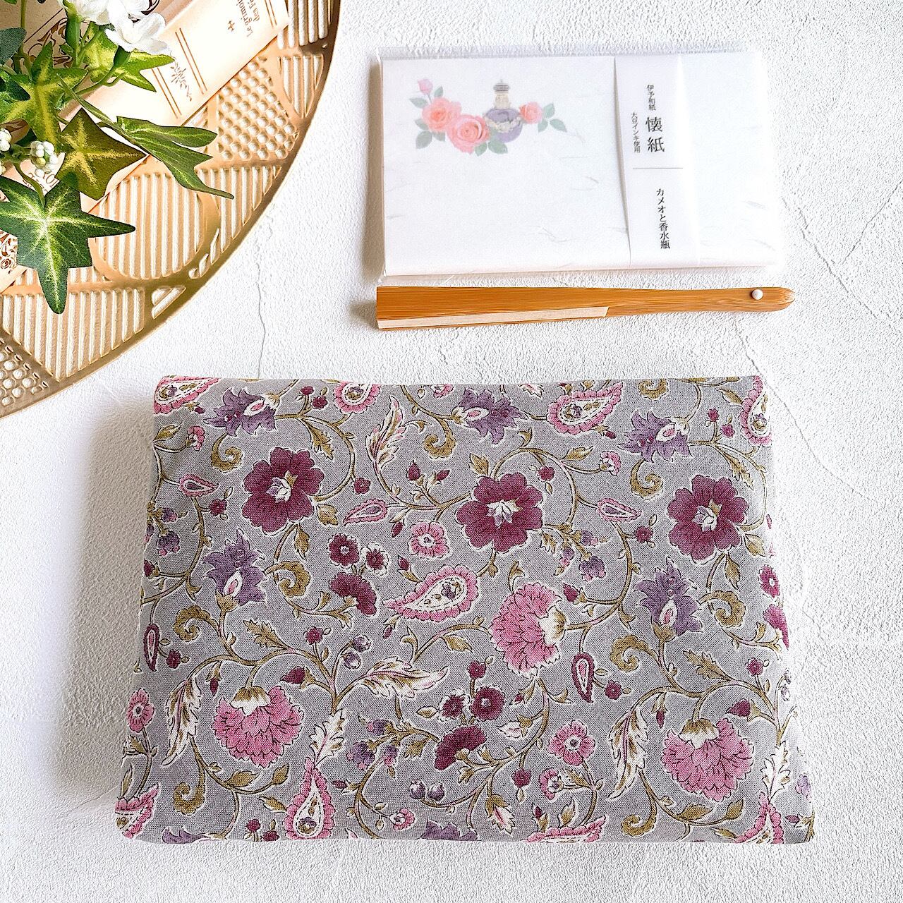 数寄屋袋(グレー更紗) 御朱印帳入れ 和柄ポーチ Sukiyabag