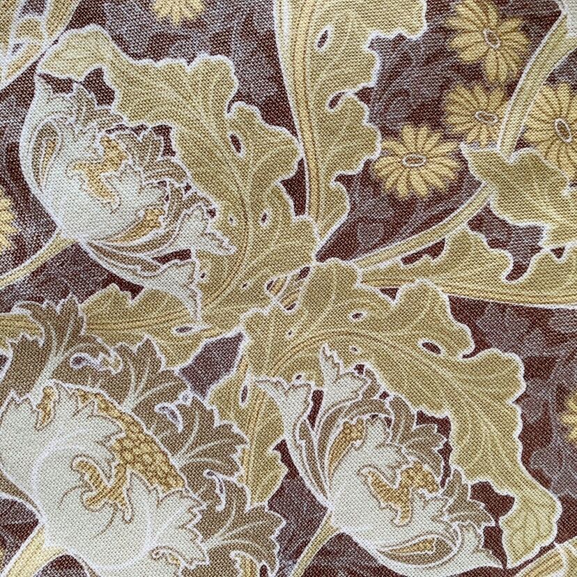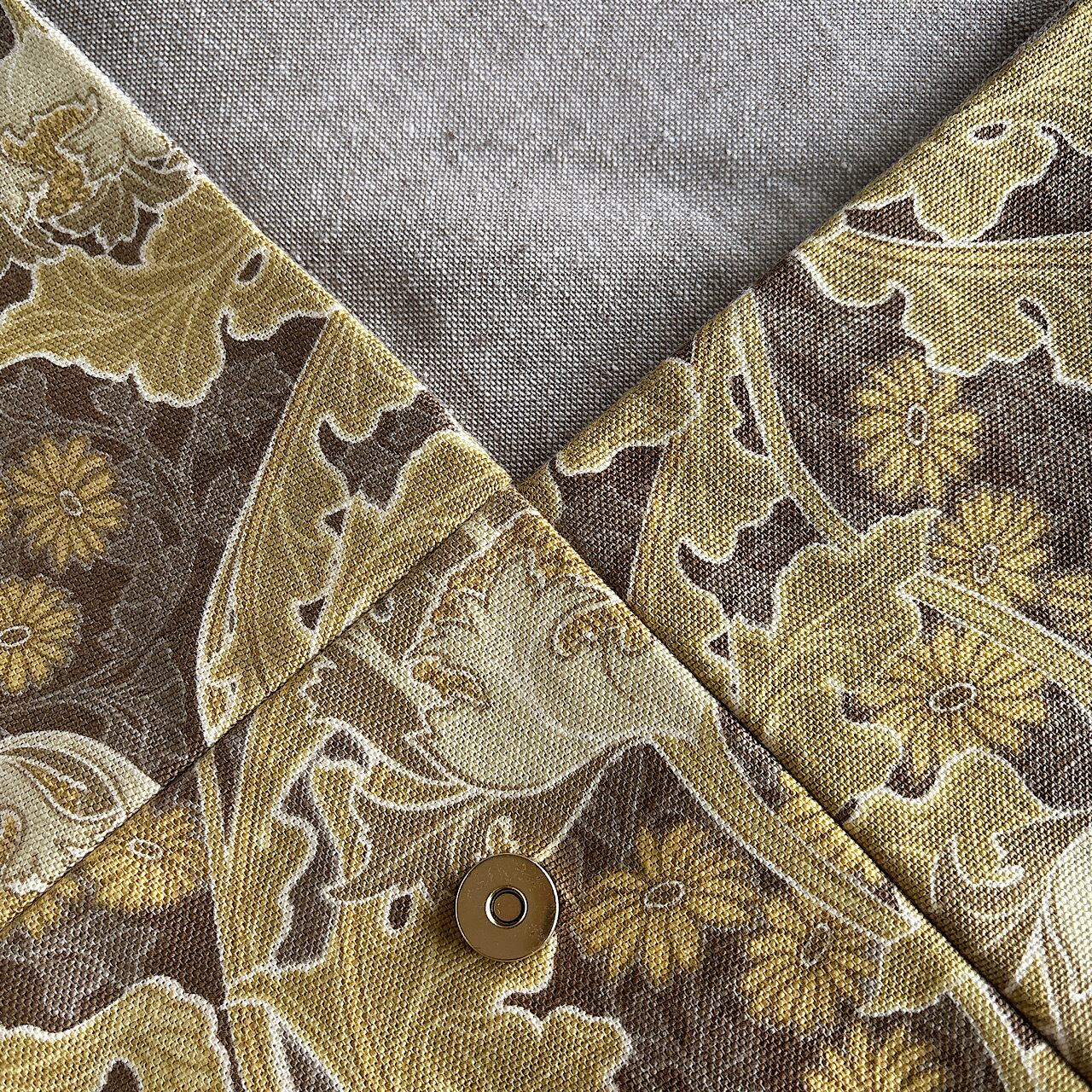 お色味は日本の伝統色「木蘭色(もくらんじき)」に近く、同系色で描かれた大きな花模様がシンプルながらも華やかさを演出。裏地には綿麻素材を合わせ、ナチュラルな雰囲気をプラスしました。