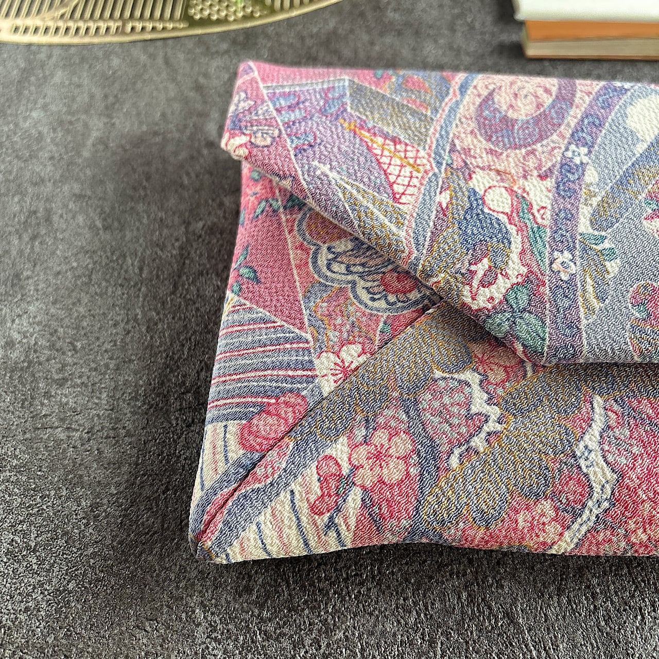 *中古布から作った品であるため、部分的な折ジワや少々の汚れ、使用感がある場合もございます。ご理解のほどお願い申し上げます。 作家として、色合いや柄にこだわりながら、皆様に楽しんでいただけるアイテムを作り上げています。和の美しさを身近に感じられる、素敵なご縁がありますように。