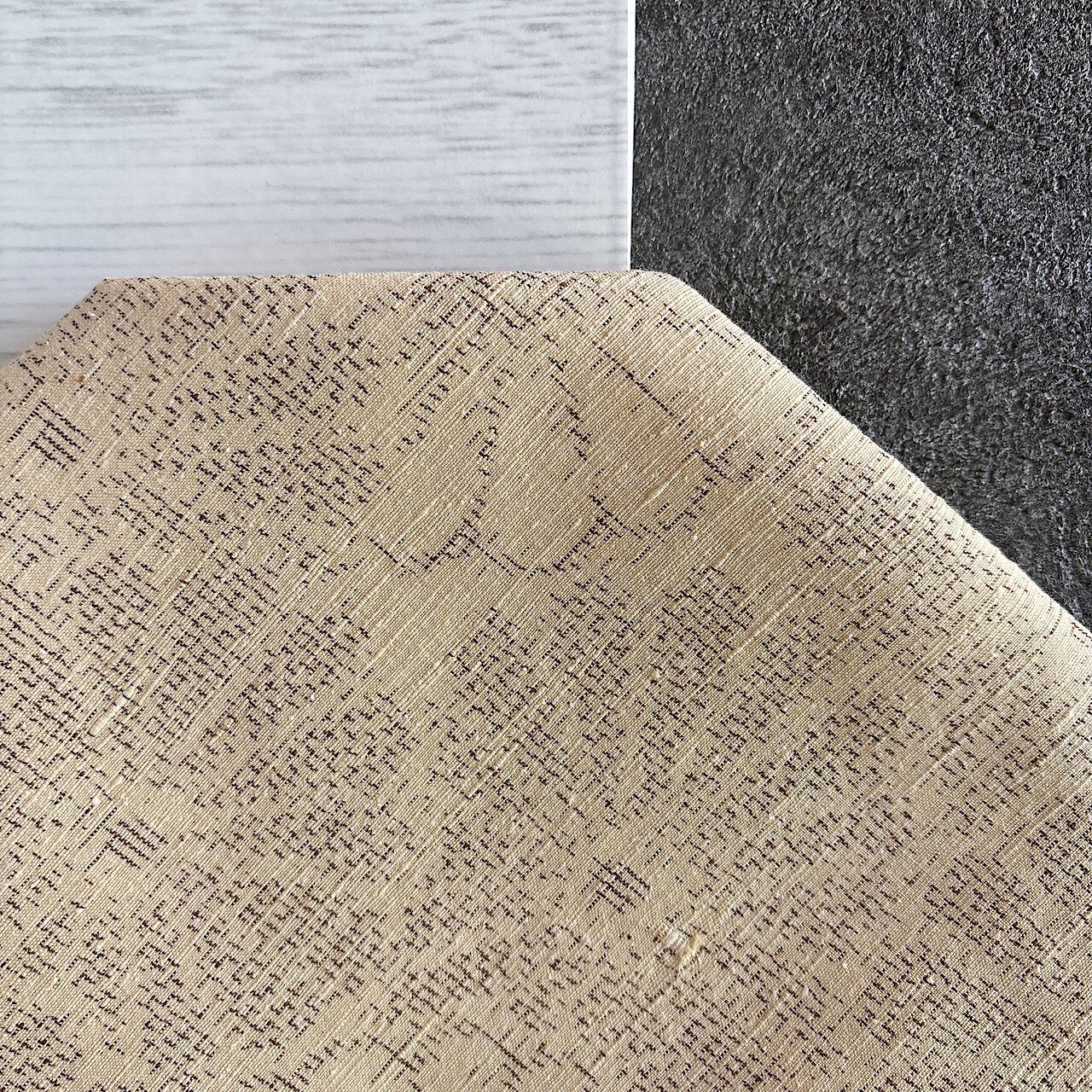 地色は黄色味を帯びたクリームアイボリーに、丁寧に織り込まれたブラウンの丸菊模様が愛らしさを添えています。