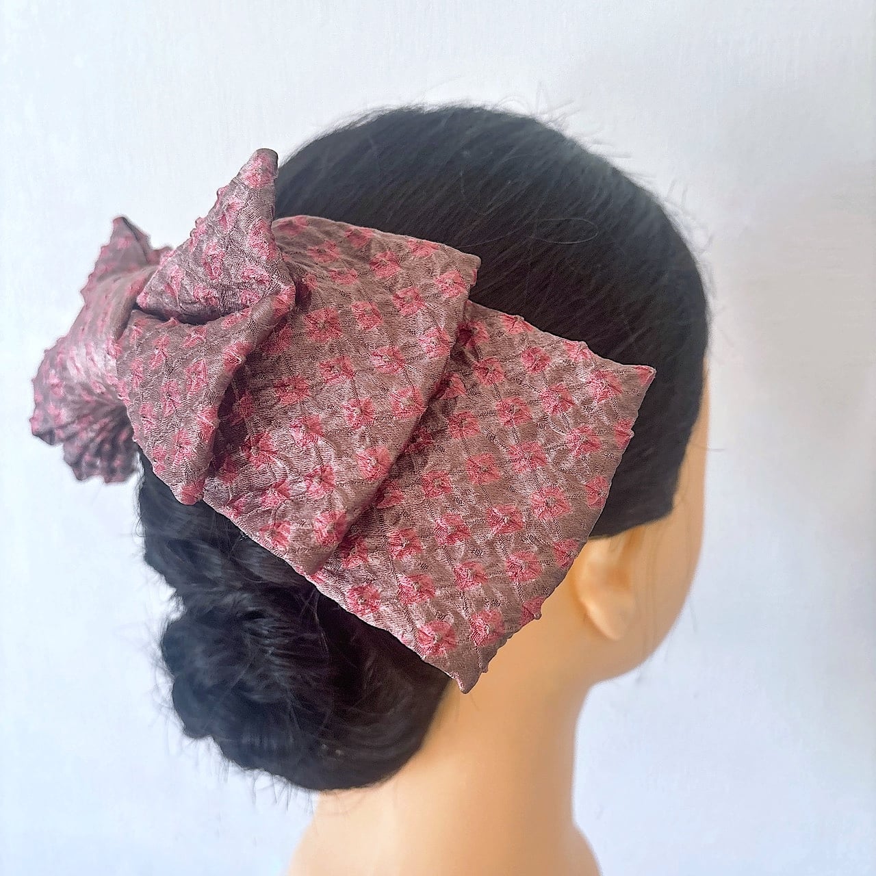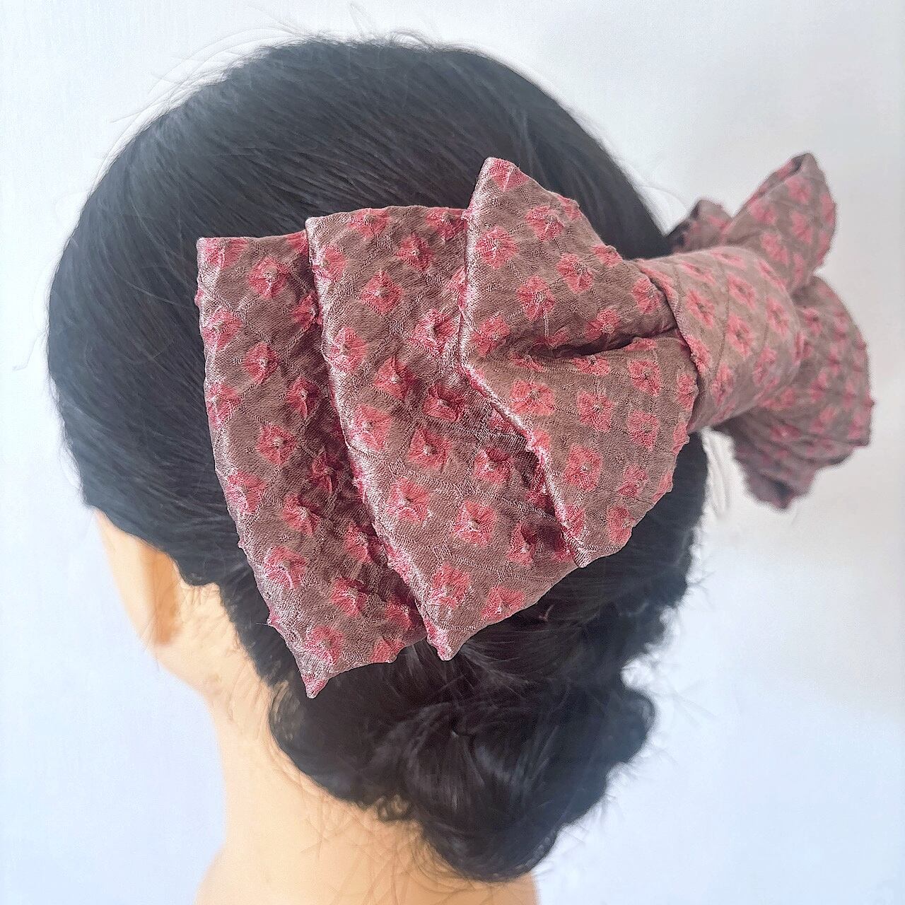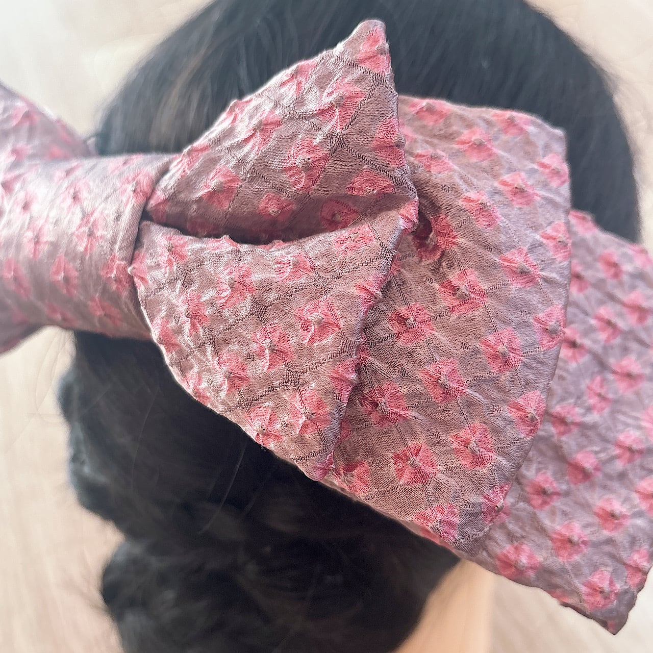 大人の女性にこそ身につけてほしい、着物リメイクのリボン髪飾りです。