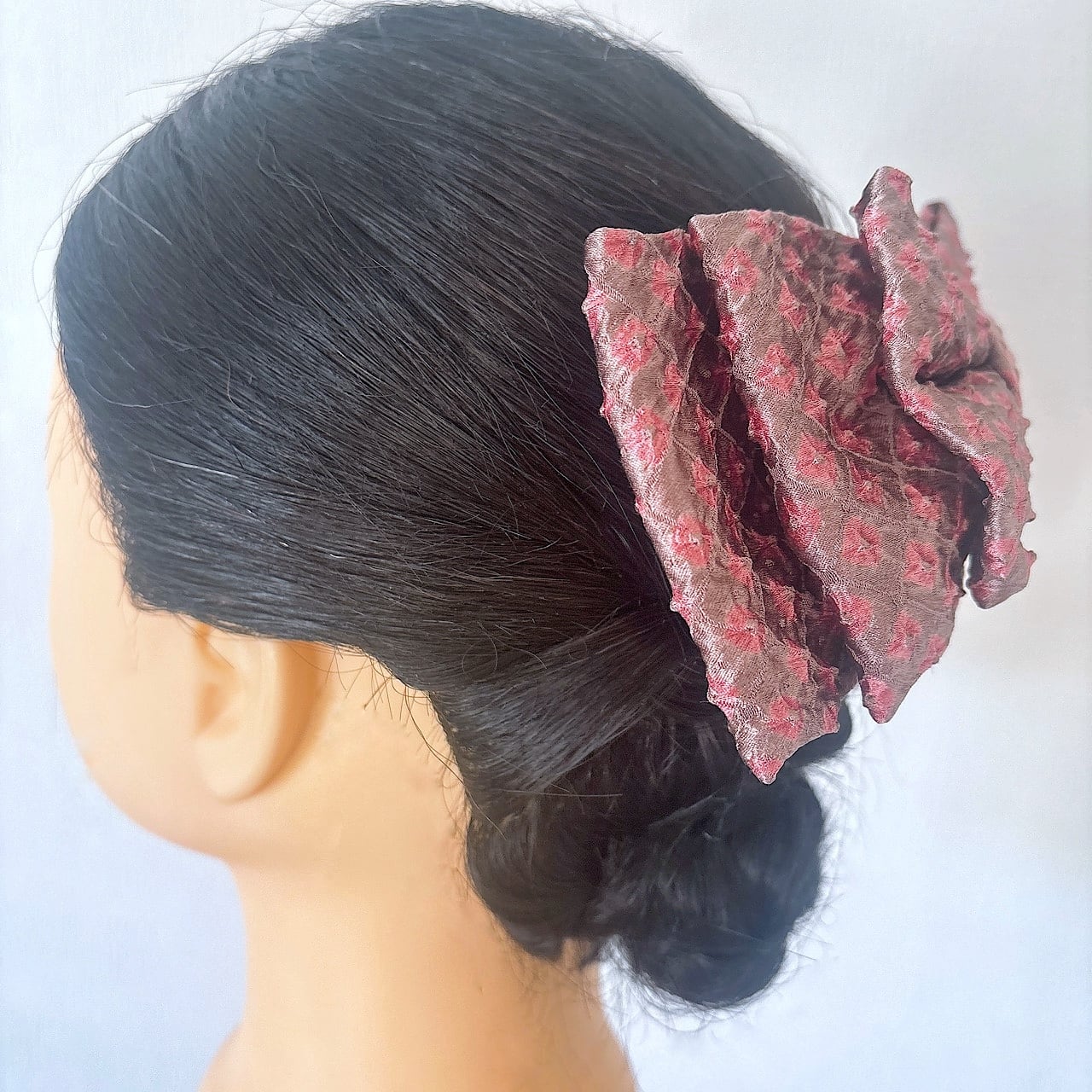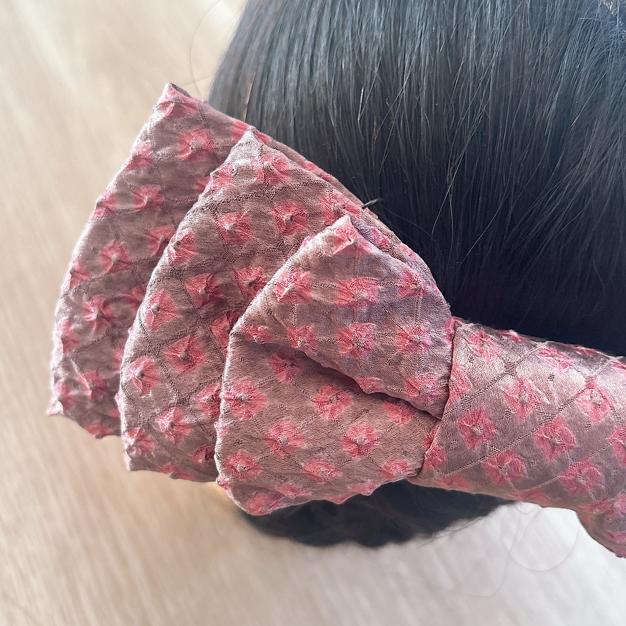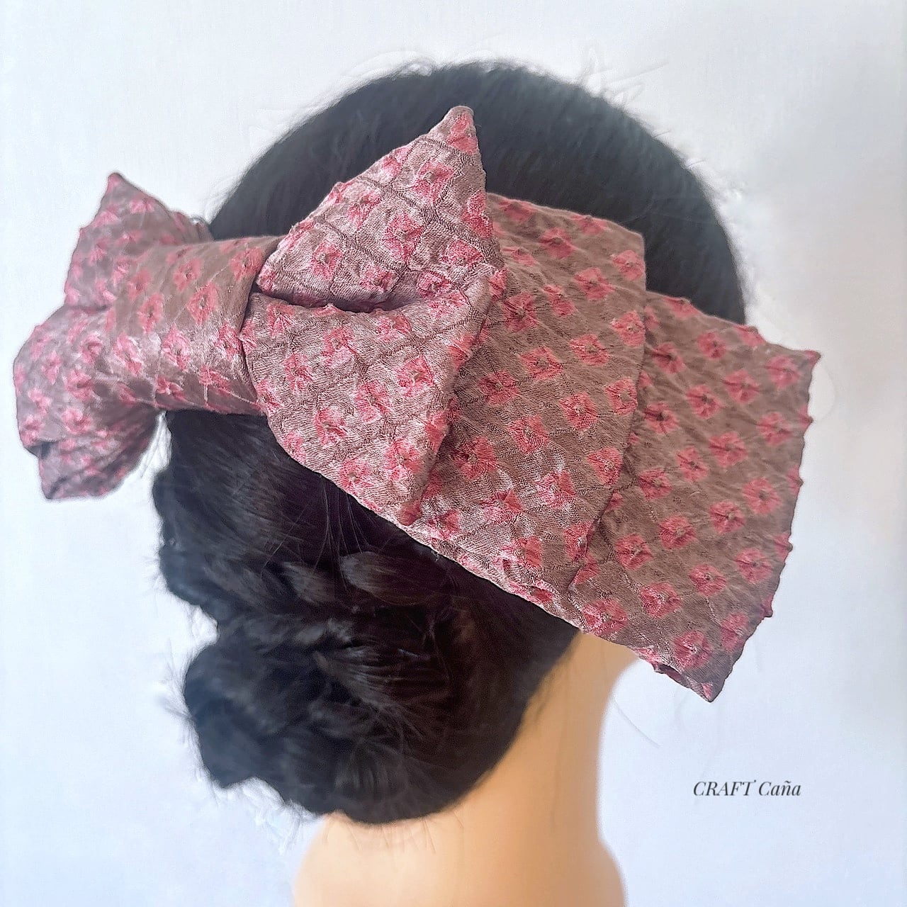 大人の女性にこそ身につけてほしい、着物リメイクのリボン髪飾りです。