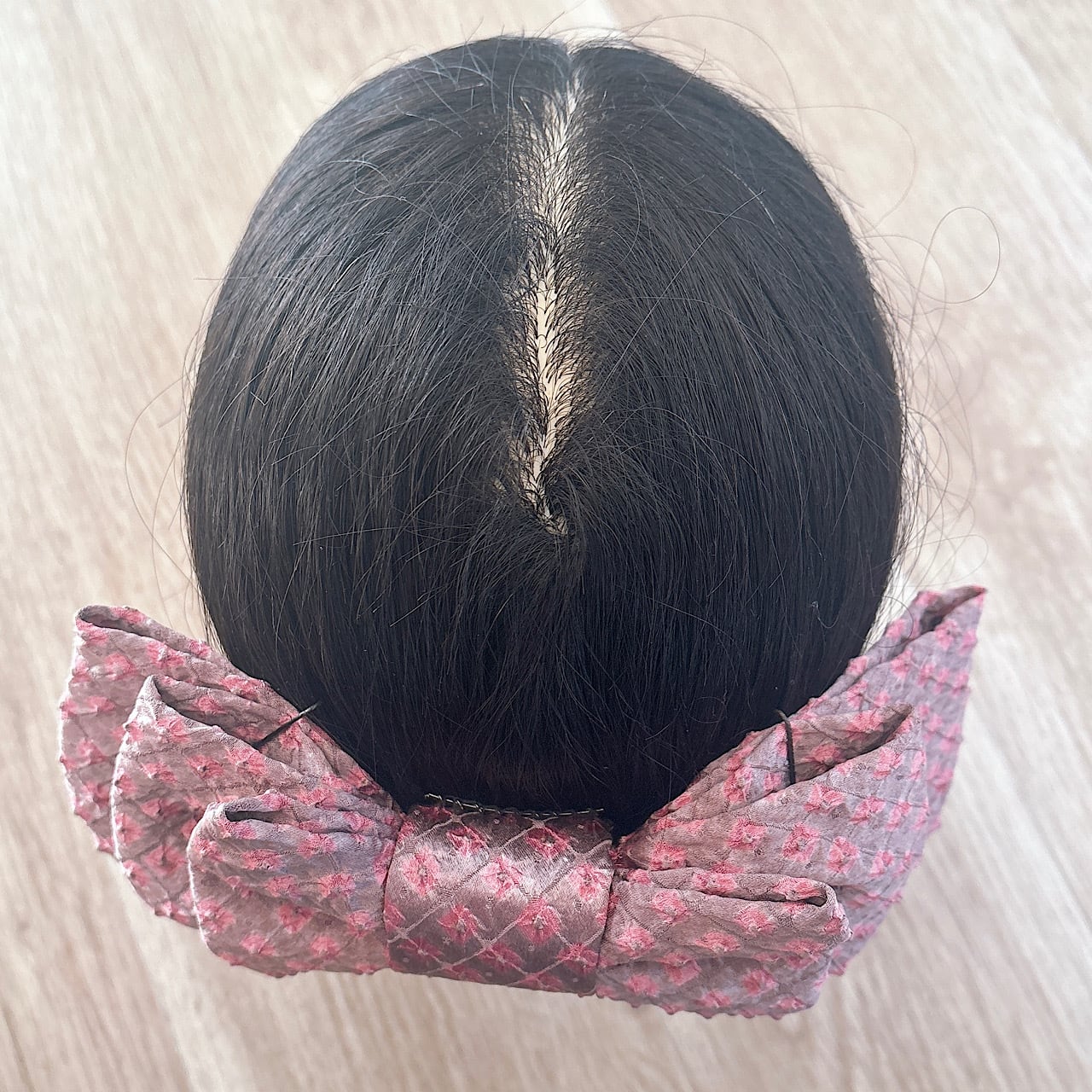 着物リボン髪飾り|3段ふんわりピンクグレー